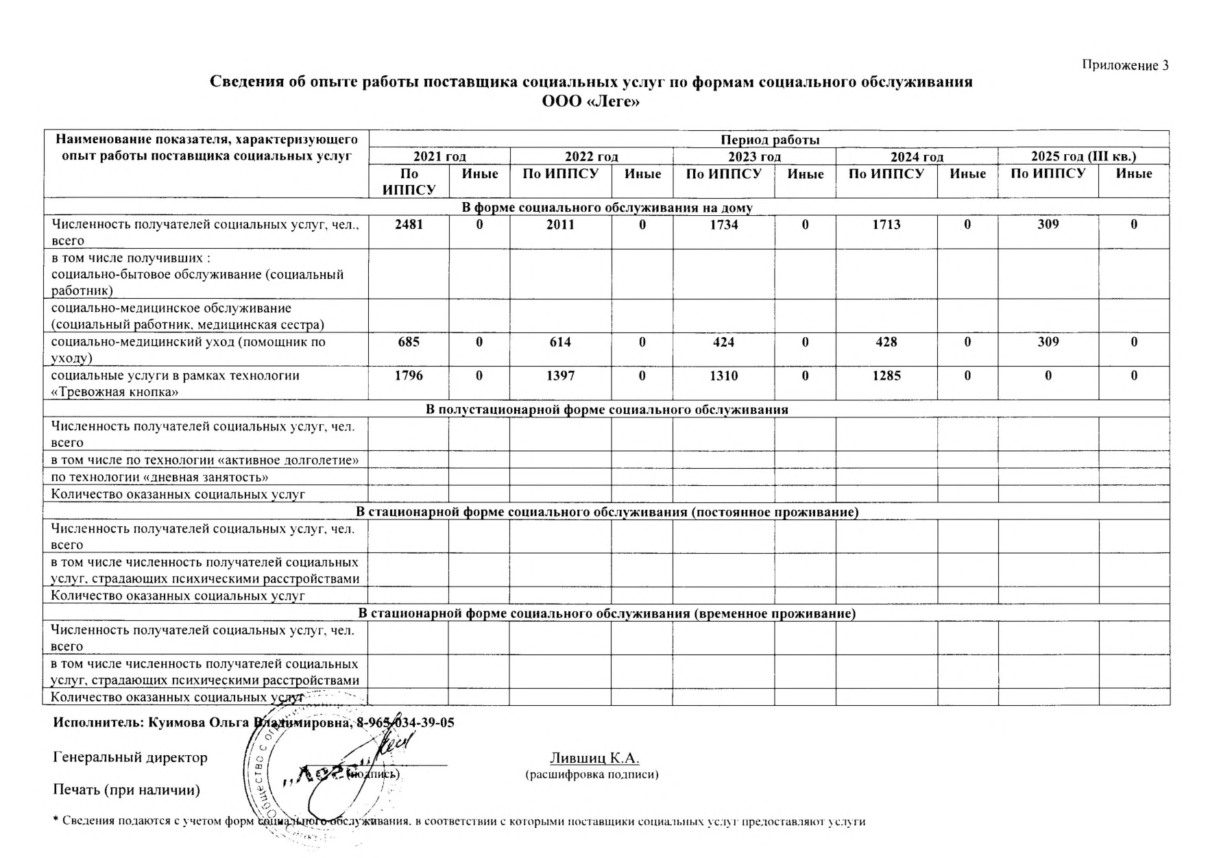 Информация об опыте работы поставщика социальных услуг за последние пять лет