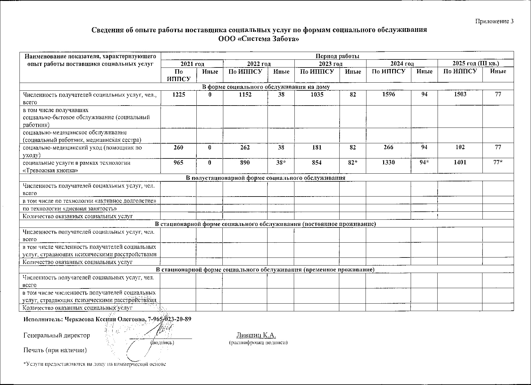 Информация об опыте работы поставщика социальных услуг за последние пять лет