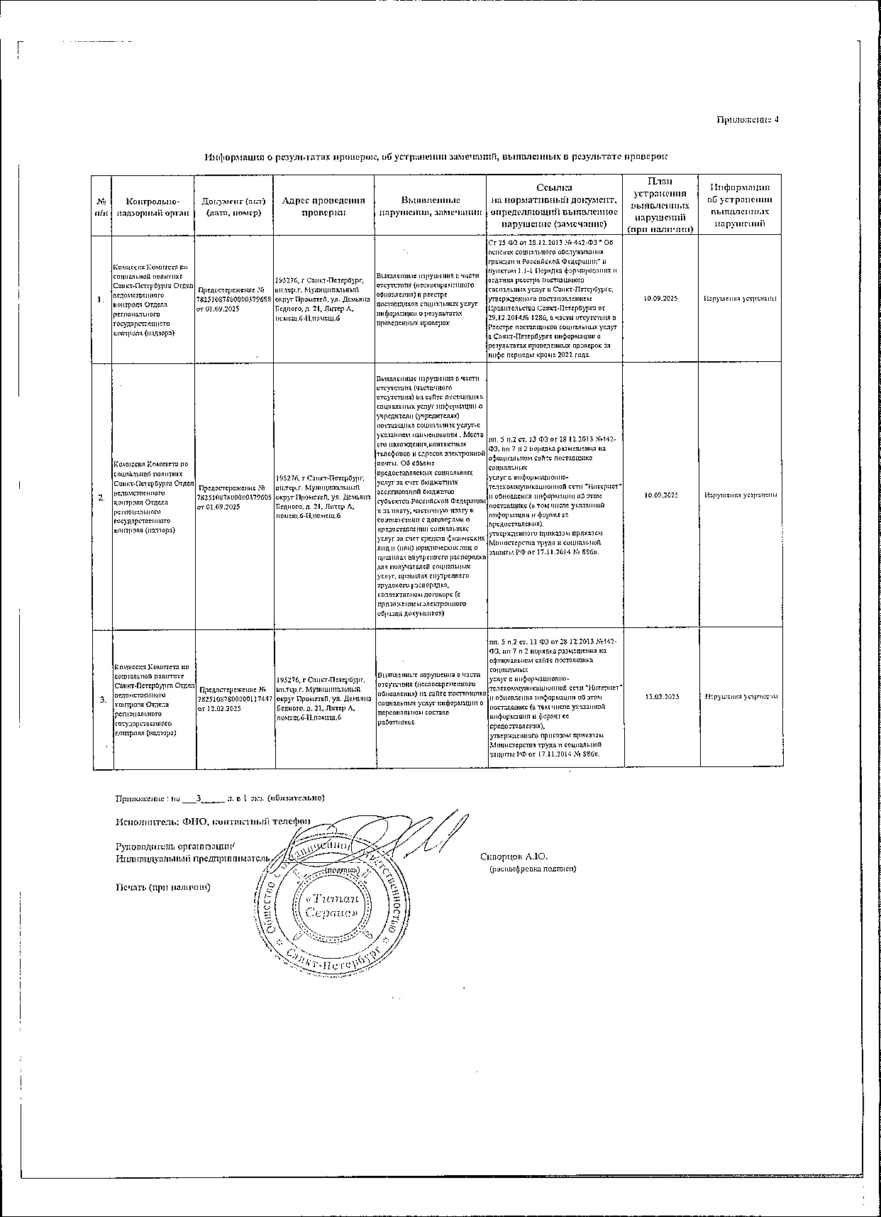 Информация об опыте работы поставщика социальных услуг за последние пять лет