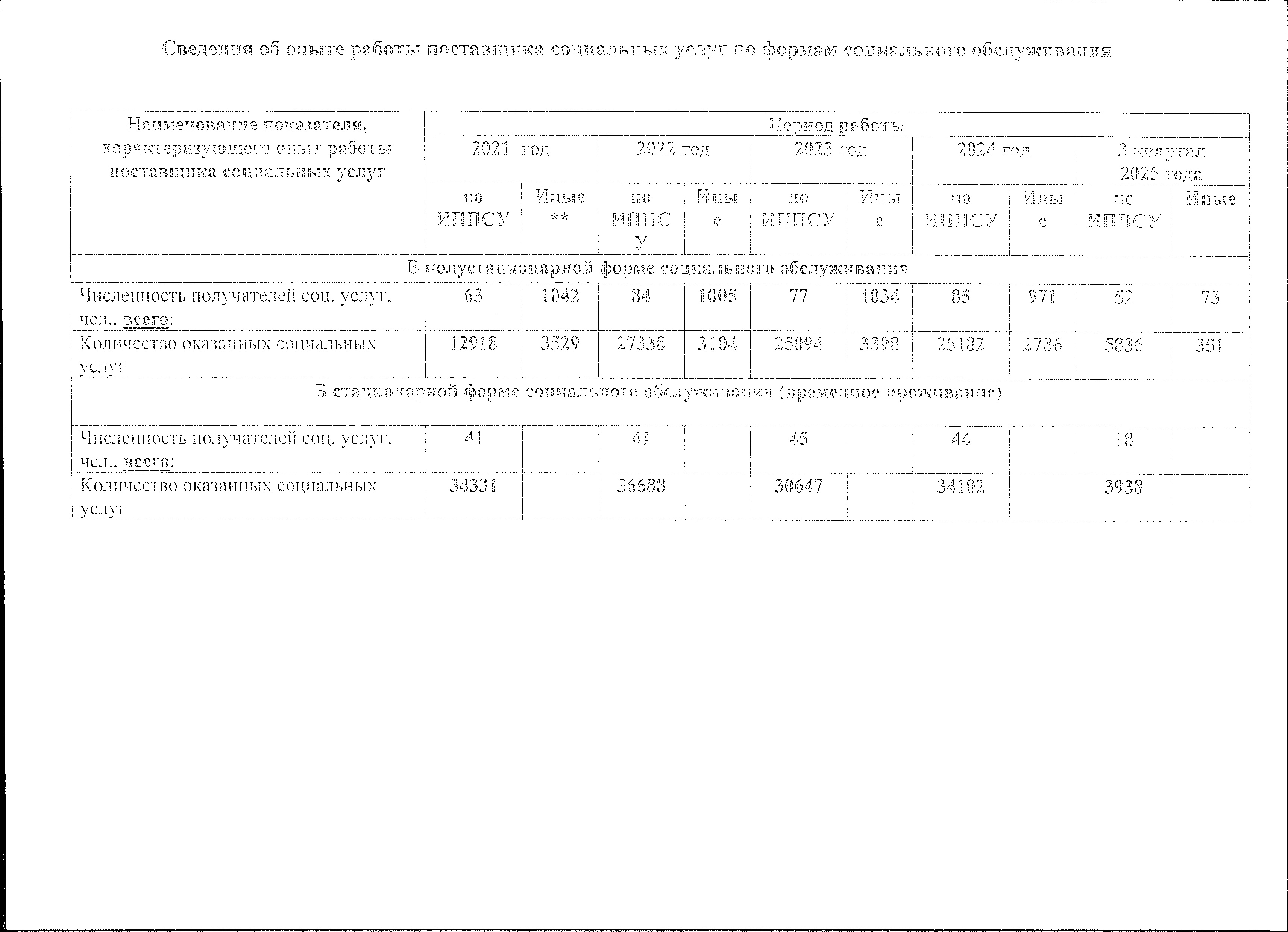 Форма обслуживания | Адрес (место) предоставления социальных услуг | Наименование категории получателей социальных услуг | Кол-во мест по ИППСУ | в т.ч. по сопровождаемому проживанию | Кол-во мест по ИППСУ (беспл.) | Кол-во мест по ИППСУ (платно) | Кол-во мест (иное) |